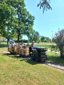Gemeinsam wanderten die Schüler, Schülerinnen und Lehrerinnen aller Klassen auf den Hausberg in St. Ulrich und genossen dort die Aussicht. Abschließend durften die Kinder mit dem Bummelzug des Dorfkreises mitfahren.