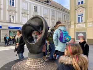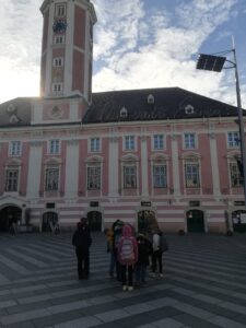 Nach der Ankunft stärkten wir uns erstmals in der Mensa der HTL mit einer Jause um dann einen Rundgang durch die Altstadt zu machen und viele Sehenswürdigkeiten zu betrachten. Nach dem Mittagessen fuhren wir zum Landhaus, wo die Aussicht über St. Pölten vom Klangturm aus genossen werden konnte. Nach einem kurzen Probesitzen im Sitzungssaal des Landhauses brachte uns der Bus wieder zurück zur Volksschule.