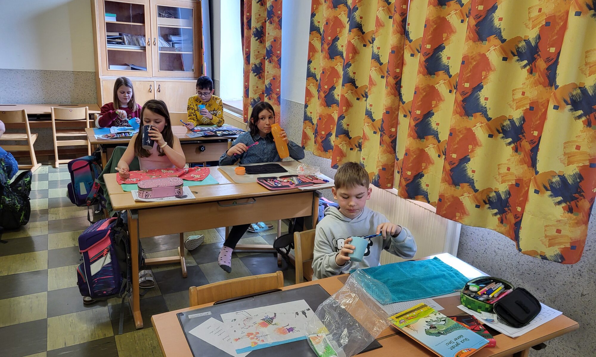 Bei ihrem zweiten Besuchstermin zeigte die Zahngesundheitserzieherin gemeinsam mit dem Maskottchen „Kroko“ den Kindern das richtige Zähneputzen.