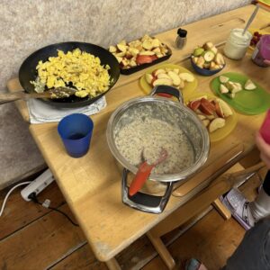 Den Tag des gesunden Frühstücks, 26. September 2025, nahm die 2. Klasse zum Anlass, ein gesundes Frühstück mit Vollkornbrot, Kräuteraufstrich, Obst, Gemüse, Porridge, Nüssen und Eierspeise gemeinsam zuzubereiten und zu genießen.